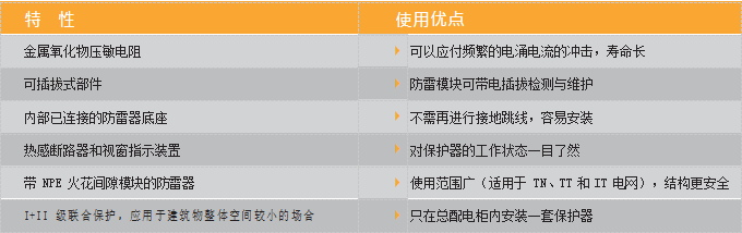 OBO 防雷器 V 25-B+C 不仅能承受高通流容量的雷电流,同时具有低的保护电压的特性,能够作为一个 I+II 级联合保护器使用。